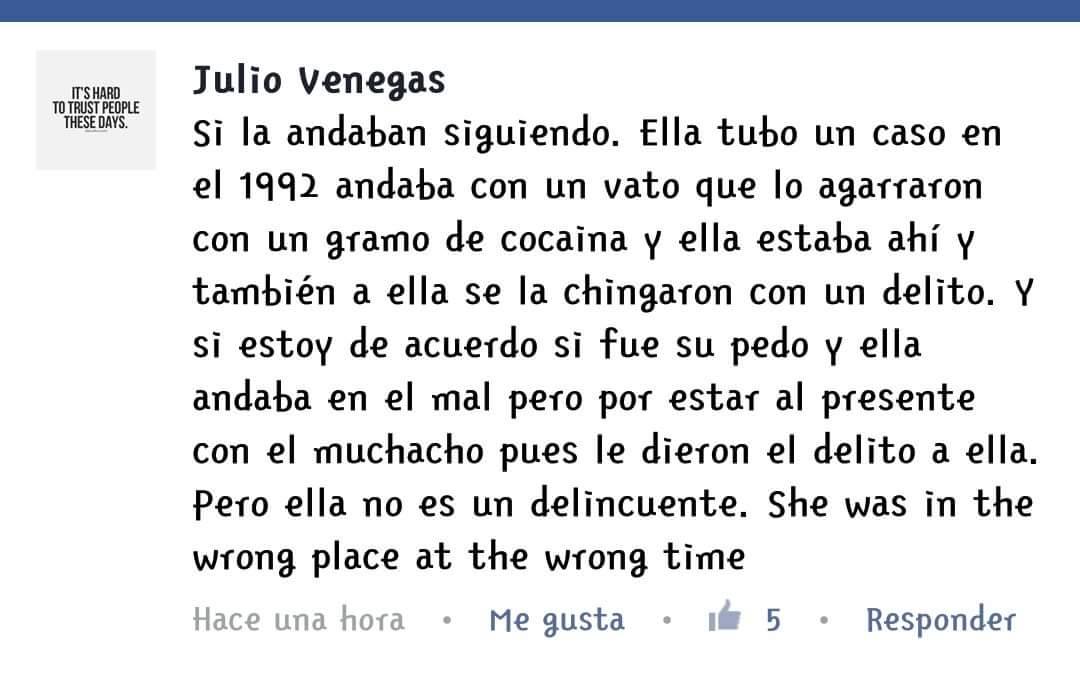 “La andaban siguiendo. Ella tuvo un caso en 1992. Andaba con una persona a la que detuvieron con un gramo de cocaina”, aseguró su hermano. “Ella estaba con él y se la chingaron con un delito”.