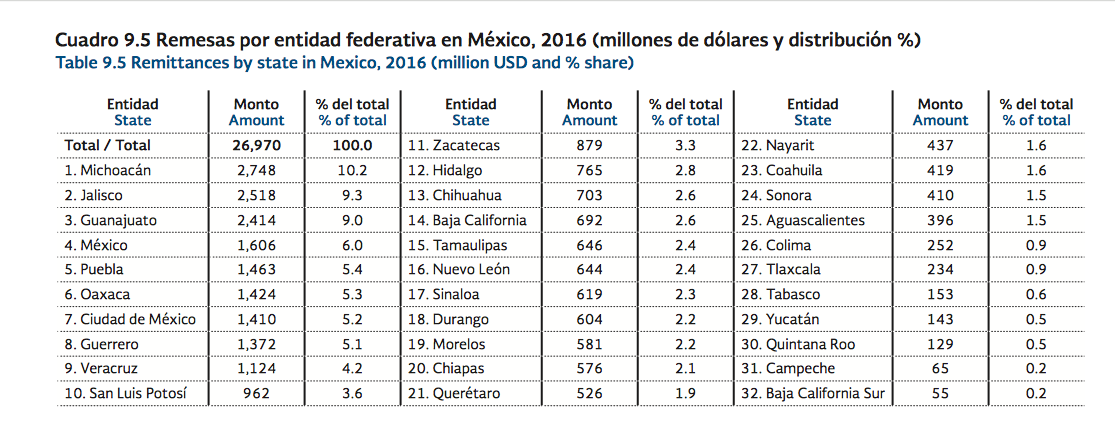 - Michoacán lleva 13 años siendo el líder en el envío de remesas a México. En segundo y tercer lugar están Jalisco y Guanajuato.