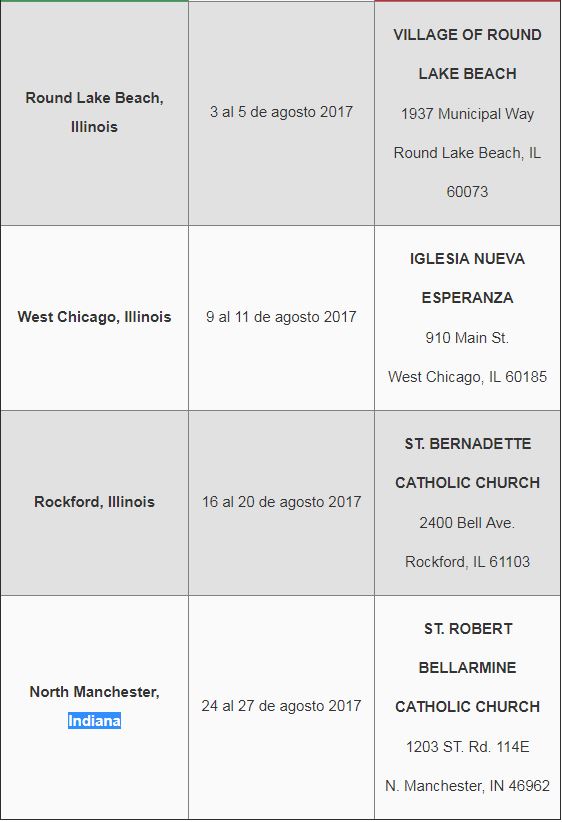 Durante agosto las representaciones móviles harán escala en Round Lake Beach, West Chicago, Rockford y North Manchester, donde los mexicanos residentes de Illinois e Indiana podrán tramitar su pasaporte y Matrícula Consular; así como solicitar su credencial para votar (INE) y actas de nacimiento para personas nacidas en México.