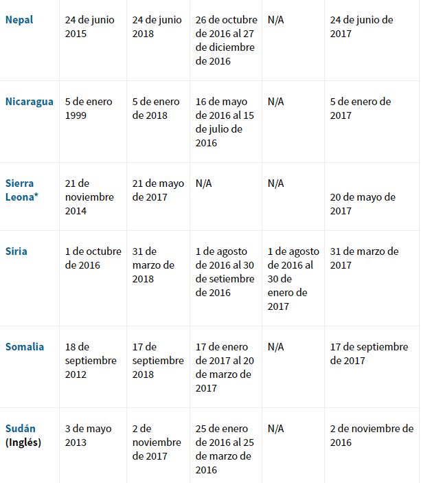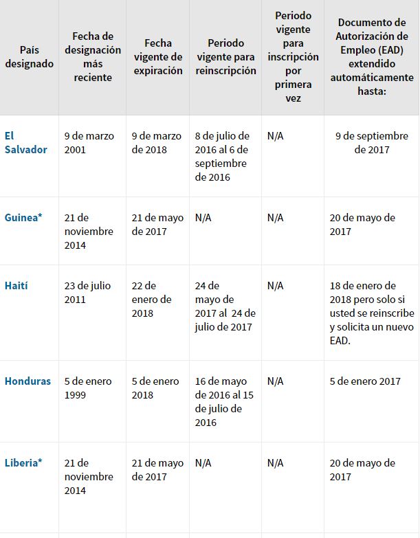 - Haber estado en Estados Unidos de formas continua desde que se le designó a su país el estatus.