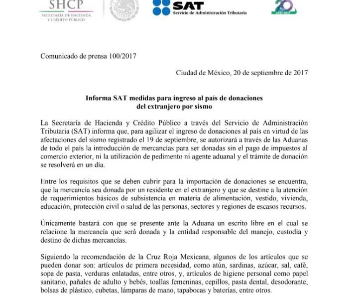 Por otro lado, mañana estará abierta una cuenta para hacer donativos, a cargo de Sin Censura con Vicente Serrano. Además El Consulado de México en Chicago hará una campaña de donativos a la Cruz Roja Mexicana.