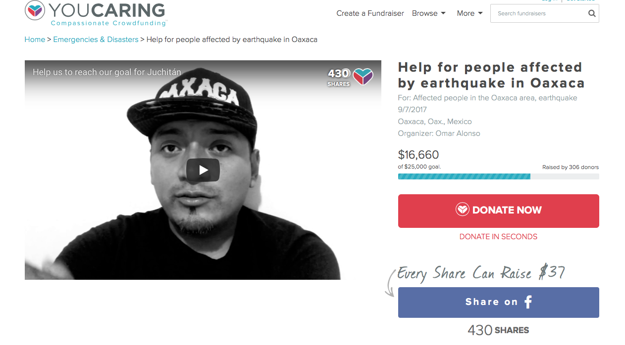 Omar y un grupo de amigos se organizó para, inicialmente ayudar a los afectados de Juchitán, Oaxaca por el sismo del 7 de septiembre. Sin embargo, debido a que las necesidades continúan luego del segundo temblor siguieron su trabajo.
