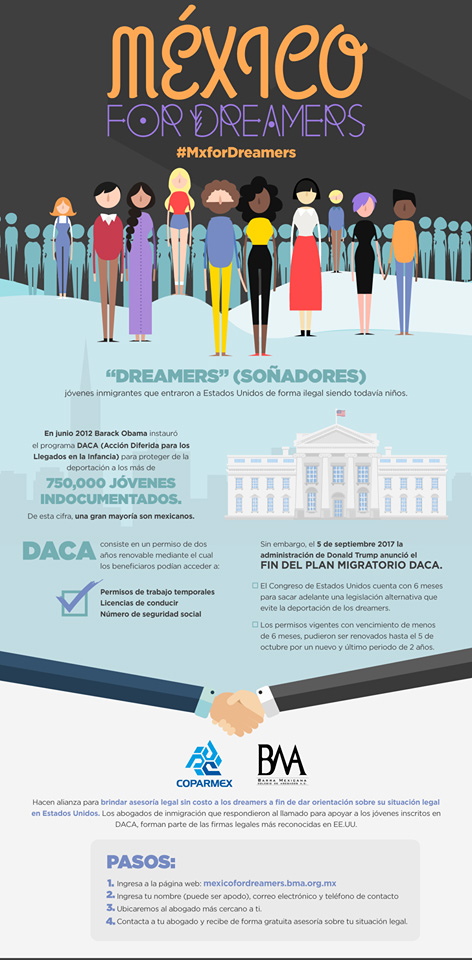 Lo anterior gracias al proyecto “MXForDreamers” que desarrollaron en conjunto la Barra Mexicana de Abogados (BMA) y la Confederación Patronal de la República Mexicana (Coparmex).