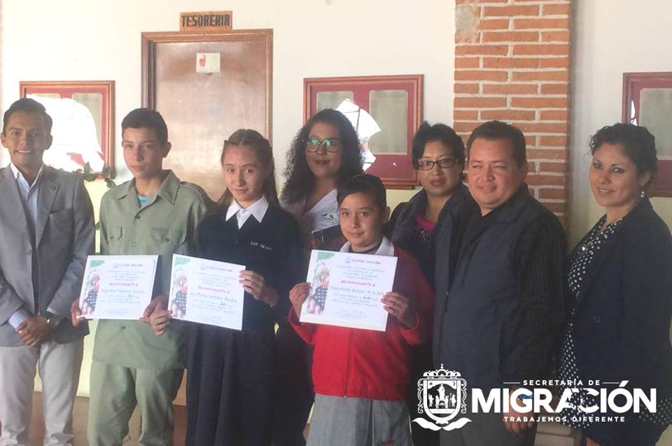 La premiación tuvo lugar en el municipio Luis Moya, a la que asistió en representación de la Secretaría de Migración, Miriam Rodríguez encargada del área de Enlace Binacional, felicitó a los enlaces por responder exitosamente a la convocatoria del concurso; y reconoció de los menores participantes, la calidad expresiva de su pensar y sentir ante este fenómeno social de la migración.