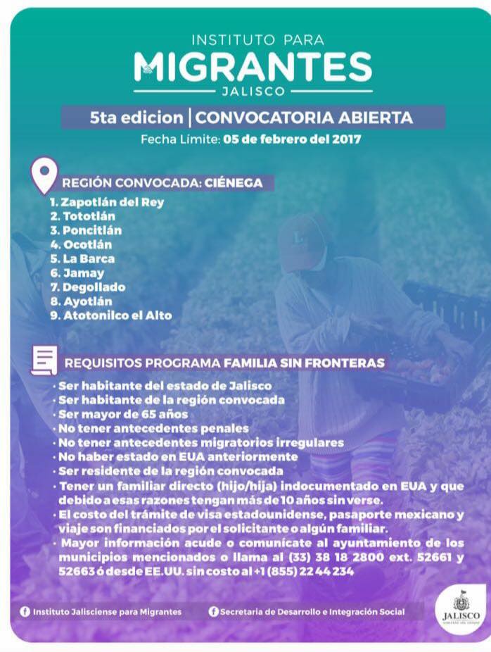 - Mayor información acude o comunícate al ayuntamiento de los municipios mencionados o llama al (33) 38 18 2800 ext. 52661 y 52663 o desde EU sin costo al +1 (855) 22 44 234