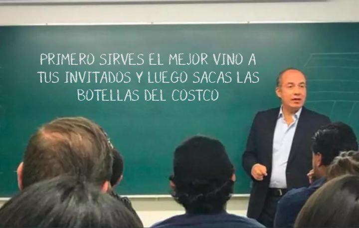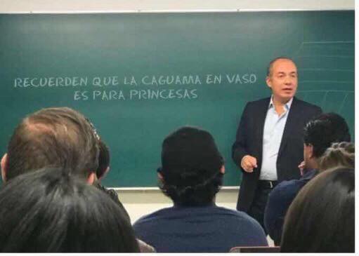 Pues los internautas aprovecharon el pizarrón que Calderón Hinojosa utilizó para impartir la clase para hacer burla de su supuesto problema con el alcohol.