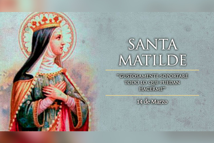 Santa Matilde fue la primera reina de Alemania (siglo X) y se caracterizó por ser humilde, piadosa y caritativa con los oprimidos. Apoyó y mandó a construir muchas iglesias y monasterios como los de Quedlinburg, Nordhausen, Engern y Poehlden.
