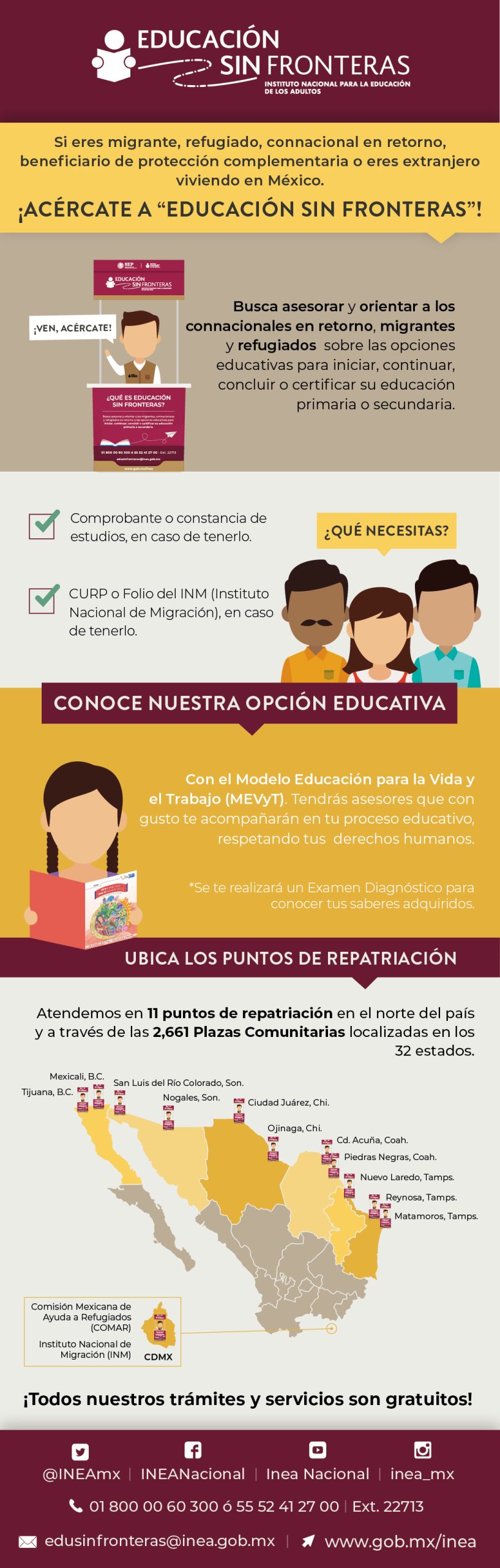 El programa Educación sin Fronteras no solo se limita a los repatriados, pues también se trabaja junto a los extranjeros que viven en México. Además ofrece opciones para los niños y jóvenes que regresan al país y no dominan el español.