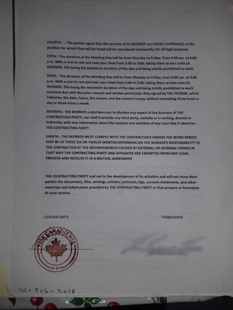 Del mismo modo, la embajada no hace las contrataciones ni las avala, por lo que si una persona llega con un documento “sellado” o “firmado” por las autoridades consulares es un FRAUDE.