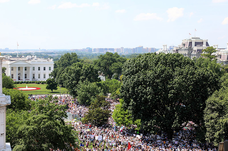 De acuerdo con reportes oficiales, más de 600 manifestaciones tuvieron lugar en la Unión Americana bajo al consigna #FamiliesBelongTogether (las familias deben permanecer unidas).