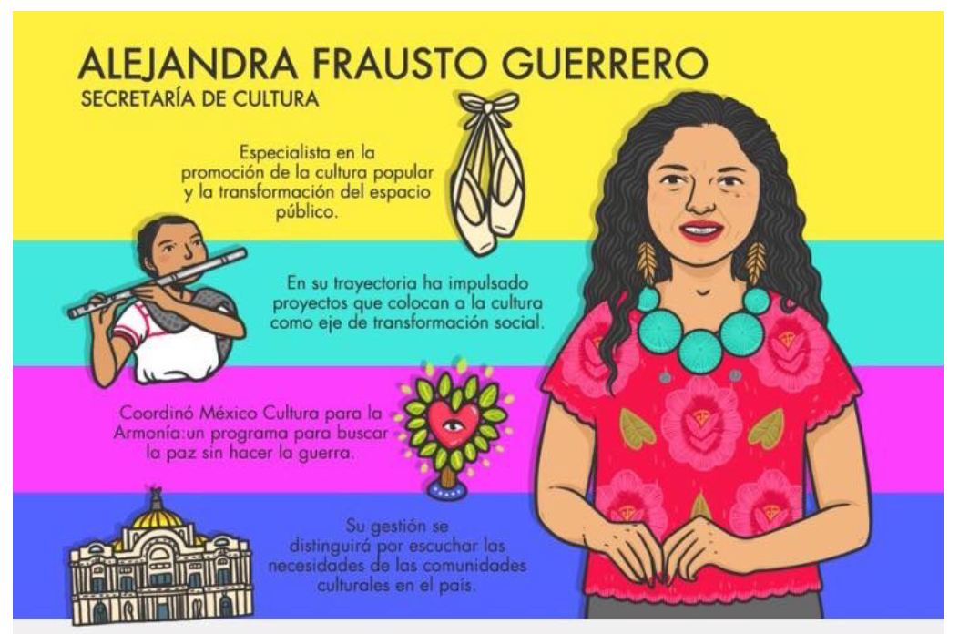 Egresada de la Facultad de Derecho de la UNAM, fue directora de Difusión Cultural de la Universidad del Claustro de Sor Juana, directora del Instituto Guerrerense de Cultura, y director de Culturas Populares, Indígenas y Urbanas.