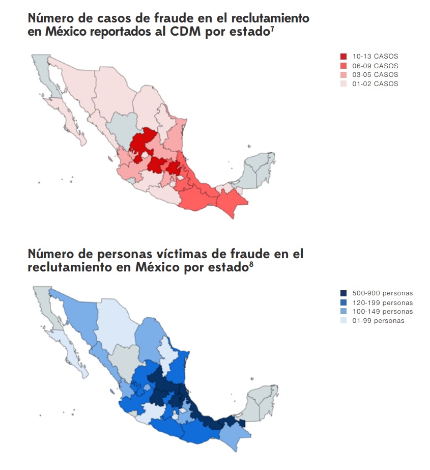 Los estados en donde más casos de fraude en el reclutamiento se han registrado son Guanajuato, Zacatecas e Hidalgo.