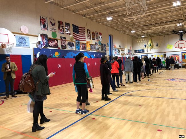 Votantes en Arlington, Virginia, aguardan en fila para emitir su voto en las elecciones de medio término el martes, 6 de noviembre de 2018.