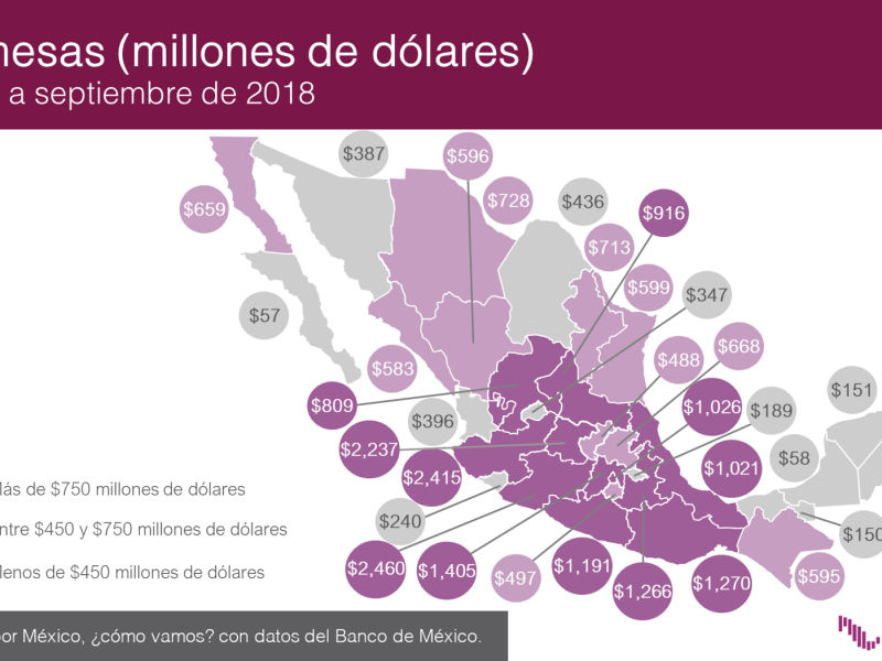 De mantenerse el mismo ritmo de avance hasta el final del año, el monto absoluto de remesas en 2018 se ubicaría en 33 mil 316 millones de dólares, rompiendo con la marca de 30 mil millones de dólares por segundo año consecutivo.