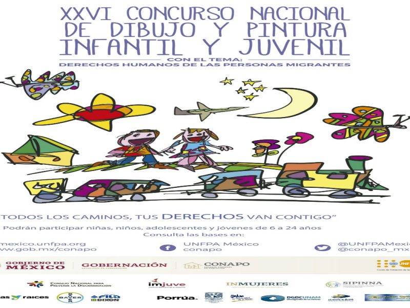 La Secretaría General del Consejo Nacional de Población y el Fondo de Población de las Naciones Unidas (Conapo), te invita a participar en el 26º Concurso Nacional de Dibujo y Pintura Infantil y Juvenil 2019 con el tema: “En todos los caminos, tus Derechos van contigo”. Derechos Humanos de las personas migrantes.