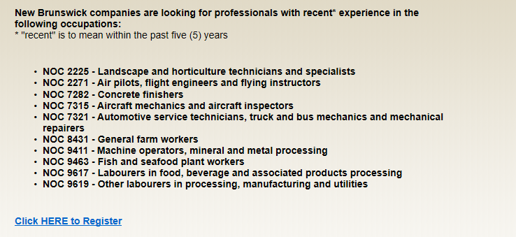 Las empresas de New Brunswick buscan profesionales con experiencia reciente (últimos cinco 5 años) en las siguientes ocupaciones: