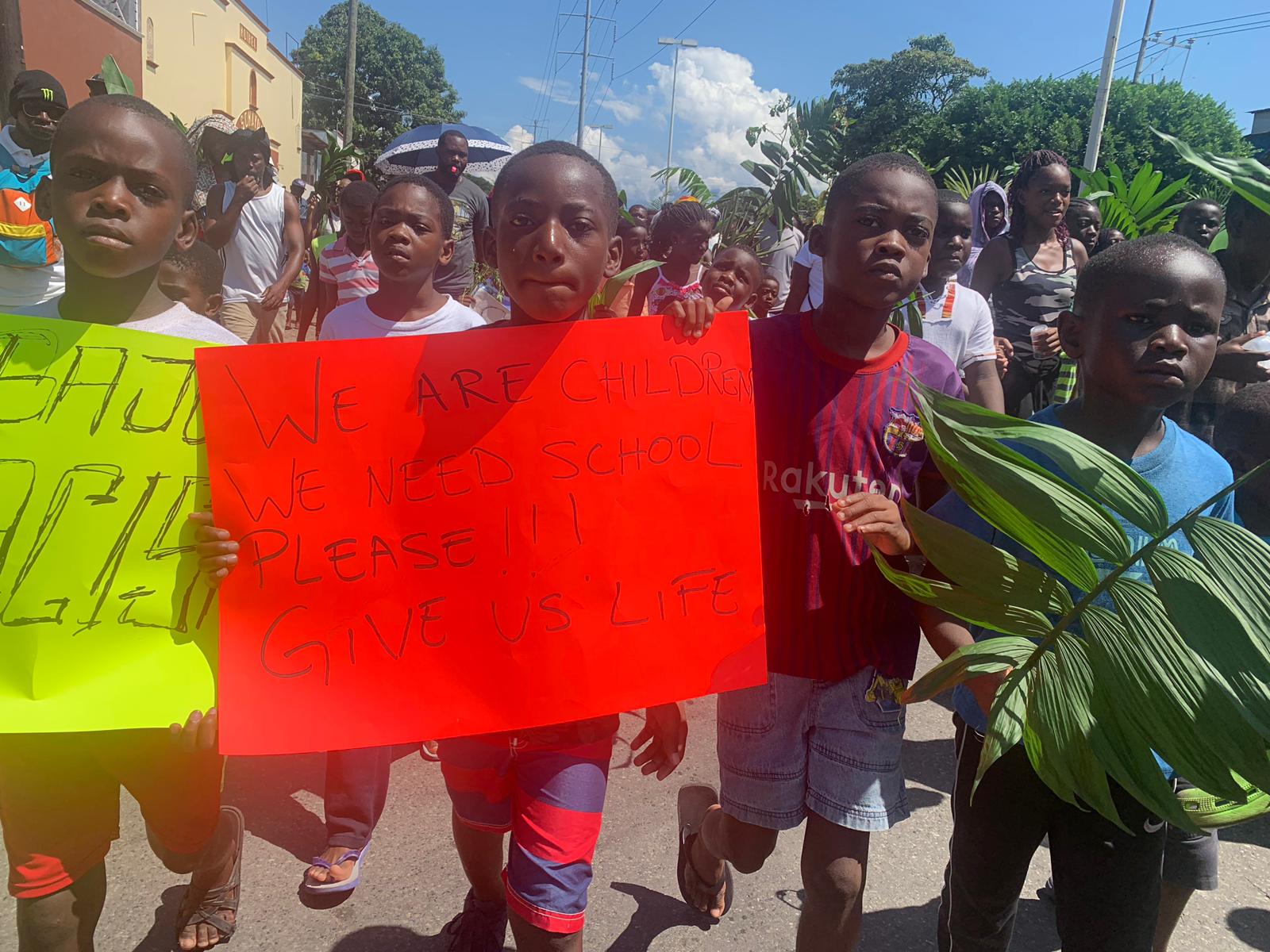 Algunos niños potaban pancartas con algunas frases como “Somos niños necesitamos escuela, ¡por favor, danos vida!” o “abajo el racismo”.