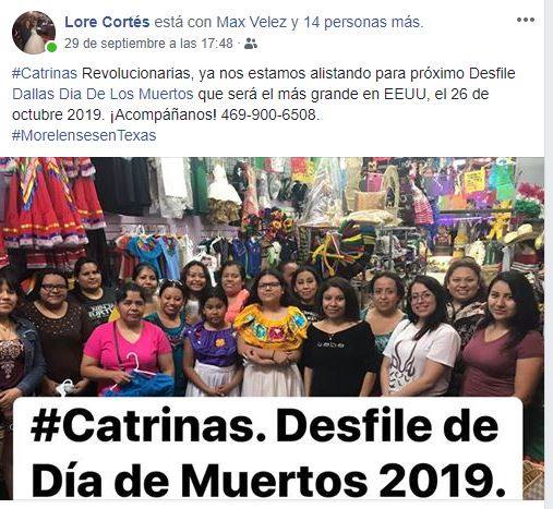Cabe destacar que, Morelenses en Texas “Tepalcingo Unido” tendrá como tema principal las catrinas revolucionarias y para poder adornar su catrina monumental de su carro alegórico tendrán un evento previo el 12 de octubre, en el cual venderán comida típica mexicana que es acostumbrada poner en los altares, practicarán las calaveritas y cantos que presentarán en el desfile y se disfrazan para reunir los fondos necesarios para adornar el carro.