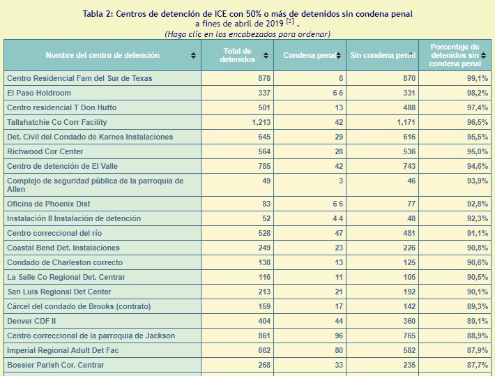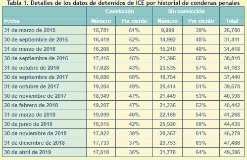 Es decir, hasta abril de 2019, solo 36 de cada 100 migrantes detenidos habían cometido un crimen.