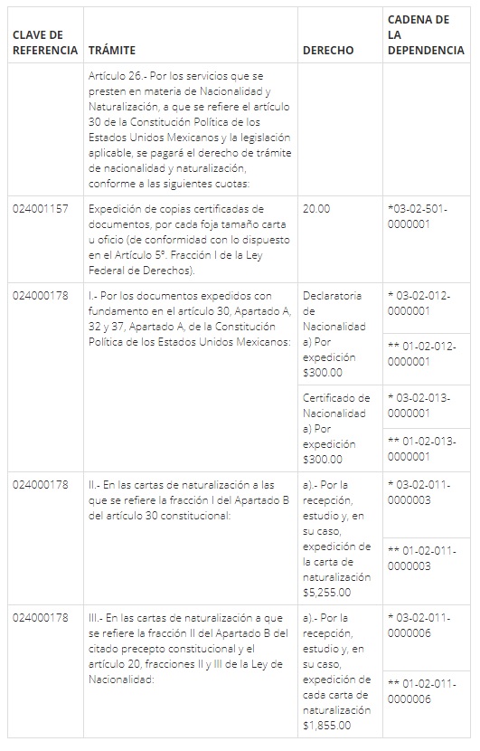 - CLAVE DE REFERENCIA: se debe anotar el número 024000178 para todos los trámites, excepto para Reposición de Documentos de Nacionalidad por Nacimientos o por Naturalización en el cual se debe anotar la clave 024001157.
