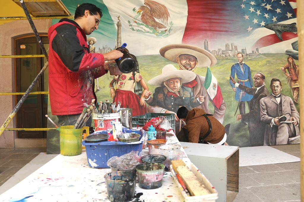 Los hermanos Ramos Pinedo realizaron el mural “Lazos históricos y culturales México-Atlanta” en el Centro Cultural Ciudadela del Arte, bajo la técnica del acrílico sobre tela y dentro de poco será trasportado a su destino final.