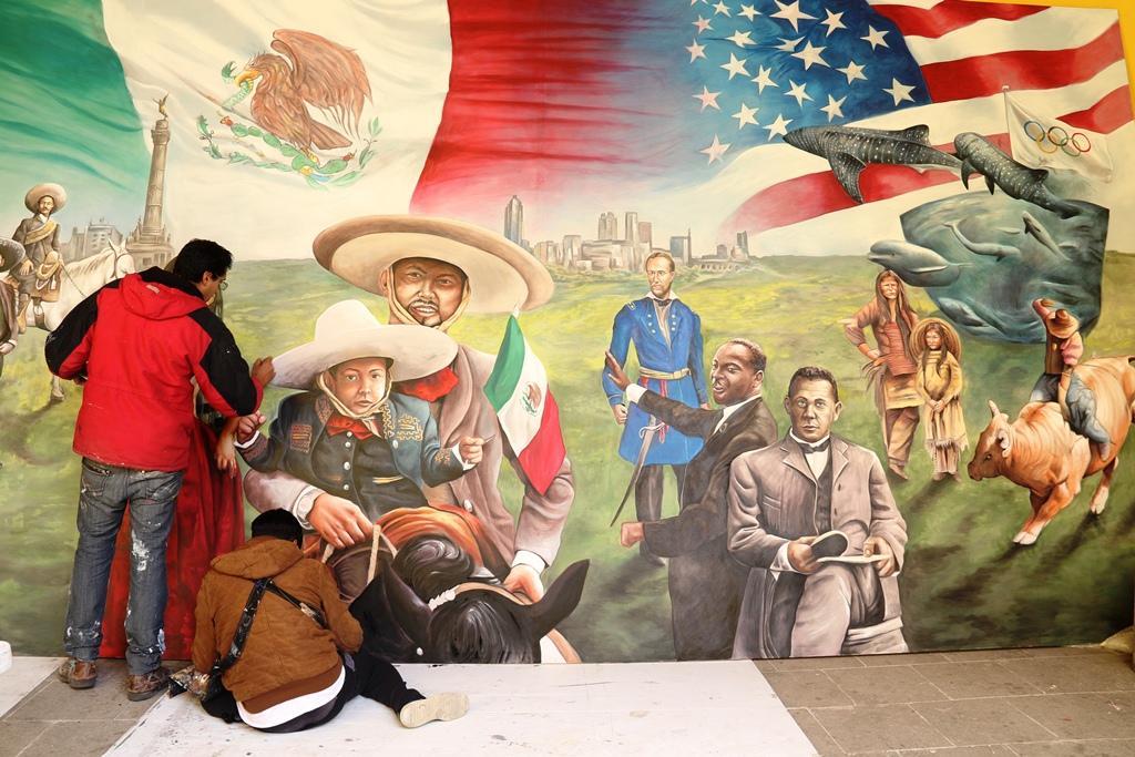 Hermanos Ramos Pinedo fusionan a México y EEUU con un mural