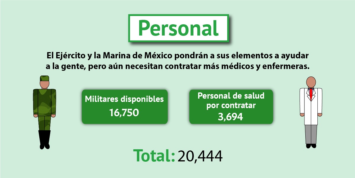 Inicia un proceso de contratación de personas (les faltan casi 4,000 personas entre médicos y enfermeras para atender la crisis).