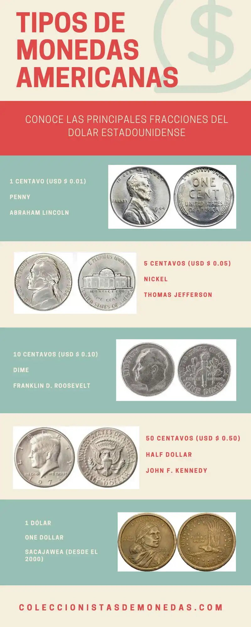 Estados Unidos es un país muy sencillo a nivel de monedas, sin embargo conviene tener claro cuáles son las principales fracciones de los dólares estadounidenses.