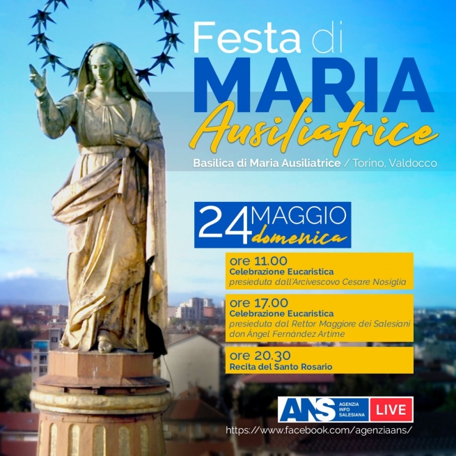 En la Basílica de María Auxiliadora, el Arzobispo de Turín, Mons. Cesare Nosiglia, presidirá la Santa Misa a las 11:00 am (hora de Italia).