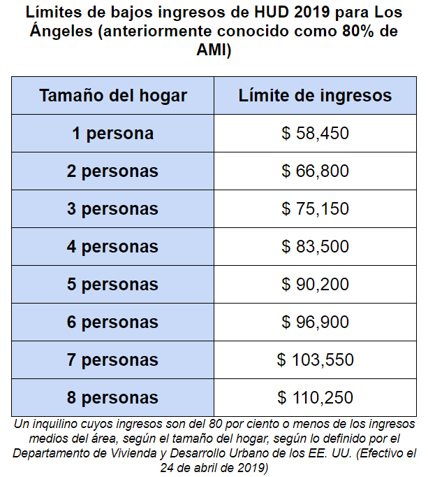 - Ingresos anuales del hogar en o por debajo del 80% del nivel de Ingreso Medio del Área (AMI) antes de la crisis del Covid-19.