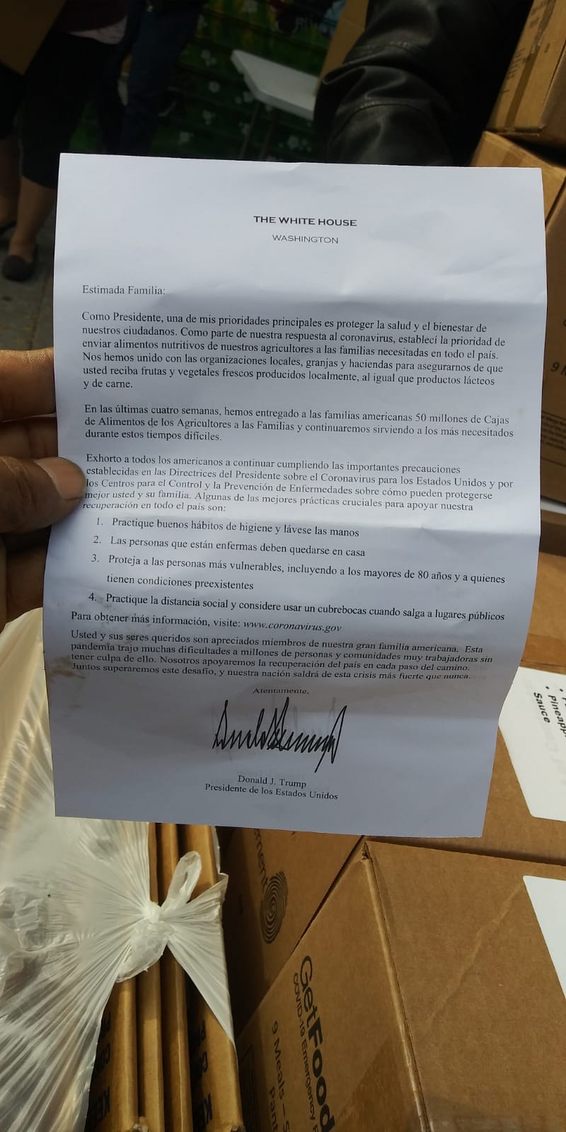 El sábado 10 de octubre se repartieron más de 160 despensas donadas por el gobierno del estado. Sin embargo, dentro de las cajas encontraron cartas en español, las cuales estaban firmadas por Donald Trump.