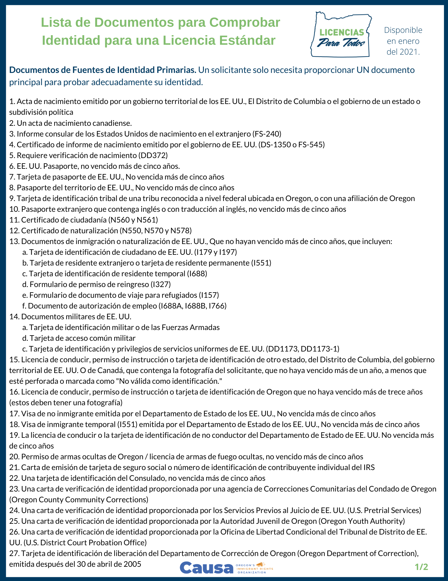 Requisitos para la licencia de conducir para migrantes de Oregon