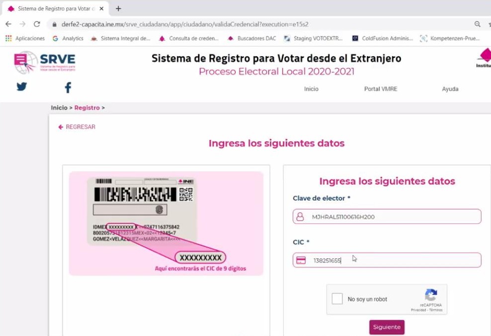 Coloca tu código de identificación de credencial (CIC). Luego tendrás que verificar que no eres un robot.