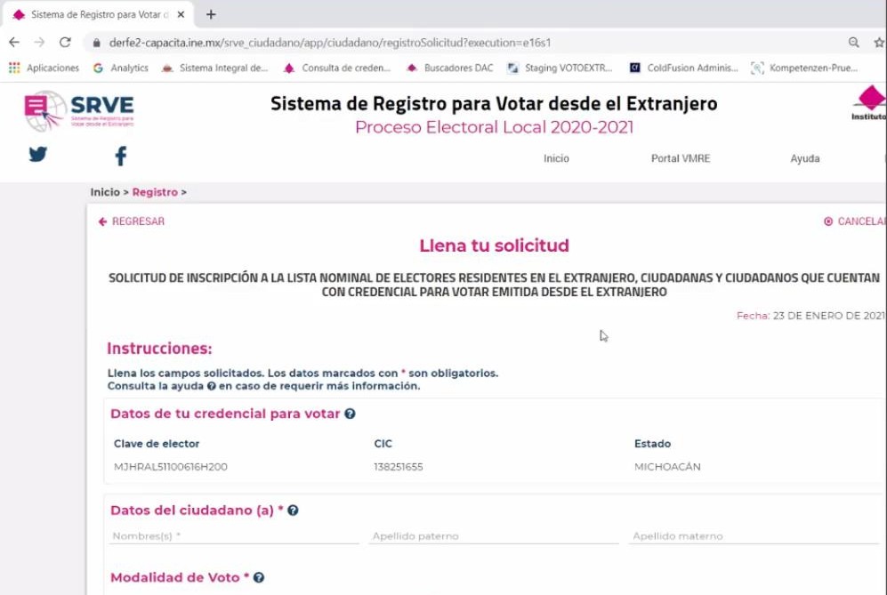 Asimismo, el sistema te mostrará el formulario para que ingreses tus datos personales. Se te preguntará cuál voto quieres elegir (electrónico o postal). Debes mencionar si el domicilio que aparece en INE es el actual o ya cambiaste de casa.
