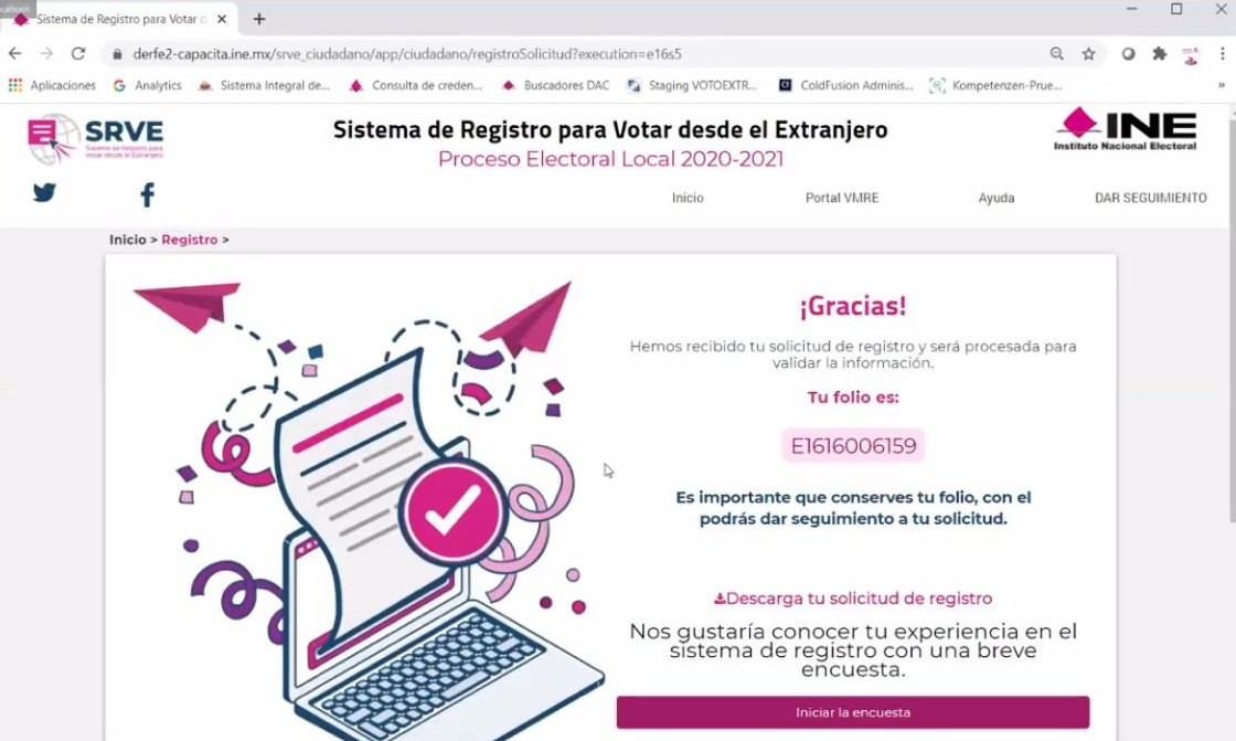 Una vez que todos tus datos estén correctos, dale clic en siguiente y terminarás tu solicitud de registro. El sistema te arrojará un folio que debes conservar para futuras situaciones, ya que te permitirá si tu solicitud fue aceptada o no.