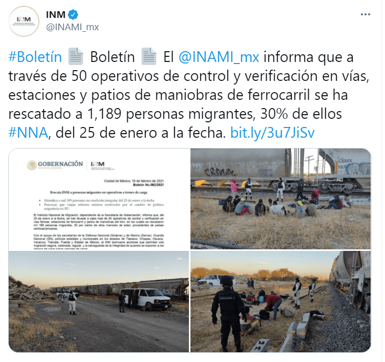 A través de un comunicado, el INM detalló que los operativos tuvieron lugar del 25 de enero al 16 de febrero. En total se realizaron más de 50 operativos de control y verificación en Tabasco, Chiapas, Oaxaca, Veracruz, Tlaxcala, Puebla y Estado de México.