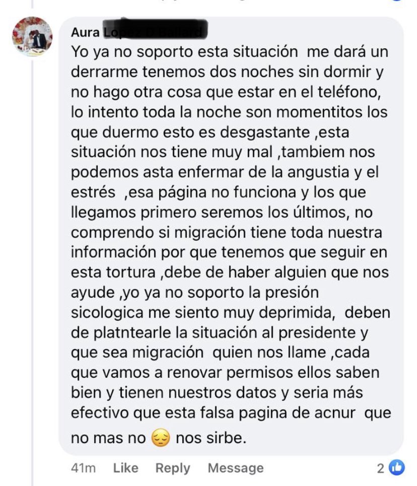 “Los que llegamos primero seremos los últimos, no entiendo, si migración tiene toda nuestra información por qué debemos seguir en esta tortura”, expresaron.