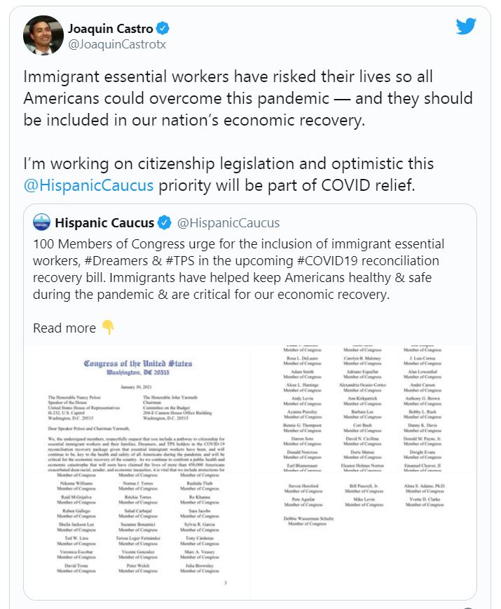 Además, la propuesta de reforma migratoria incluye a los migrantes indocumentados que trabajaron en industrias esenciales pero perdieron su empleo.