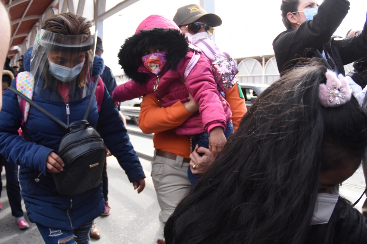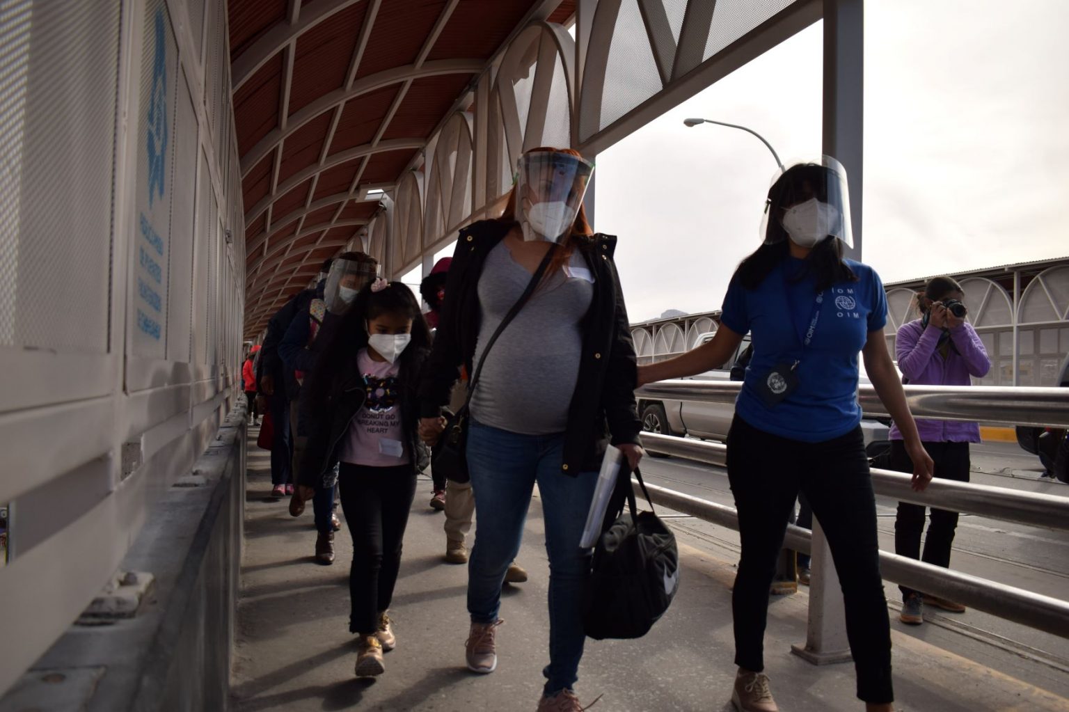 Los niños fueron los primeros en pasar. Uno de ellos dejó México de la mano de una agente de la Organización Internacional de Migrantes (OIM). Ella caminaba encorvada, para estar a la altura de su rostro, indicándole que no se preocupara.