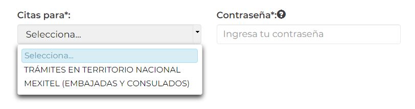 Paso 5. En el campo “Citas para” debes seleccionar la opción del trámite que quieras hacer. Te van a salir las siguientes dos opciones