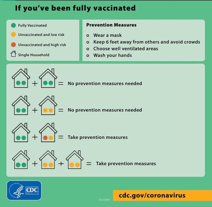 - Hacer y recibir visitas dentro de una casa o espacio privado sin usar mascarilla si estás con otras personas totalmente vacunadas de cualquier edad