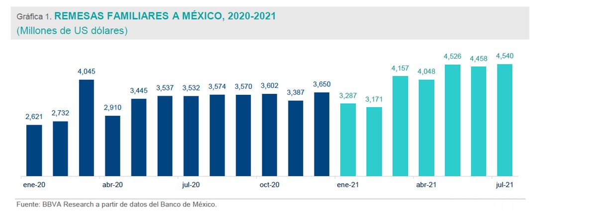 De hecho, en los últimos tres meses: mayo, junio y julio, se han registrado los tres mayores montos mensuales por ingresos de remesas a México.