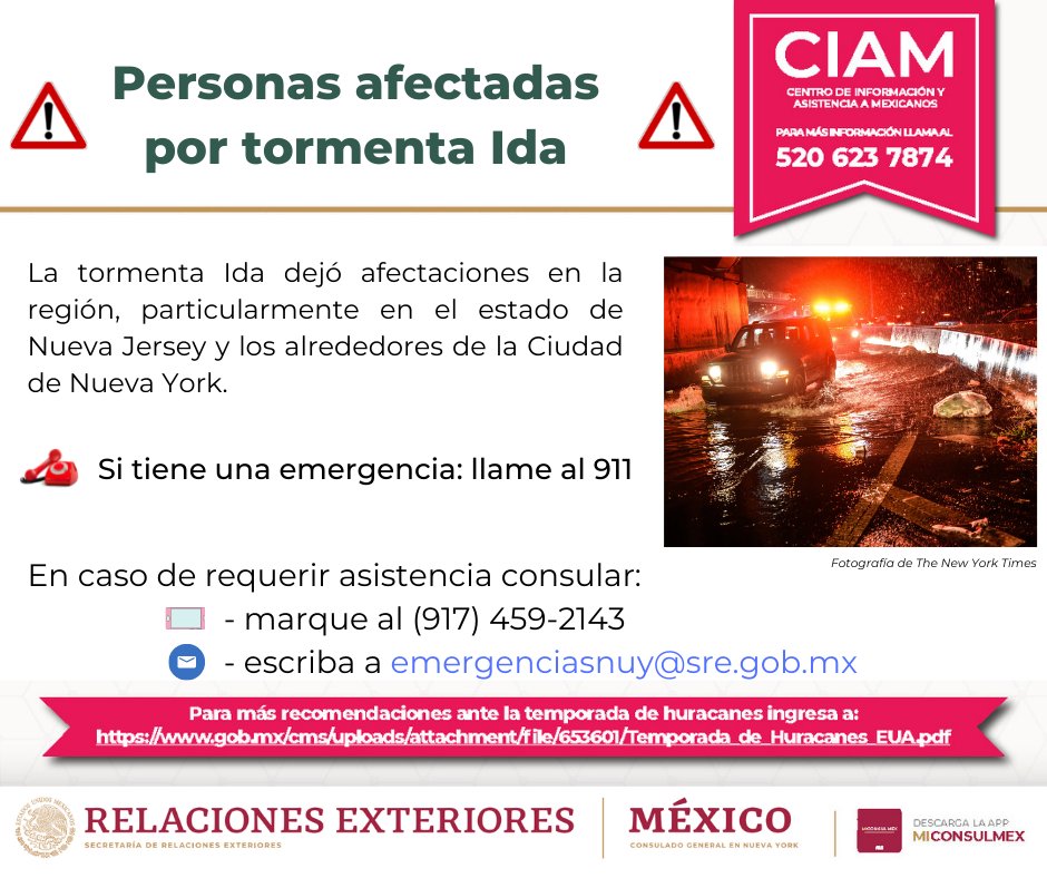 En primer lugar, el Consulado General de México en Nueva York puso a disposición de los connacionales sus números de emergencia. Si requieren de asistencia consular pueden llamar a los siguientes números: