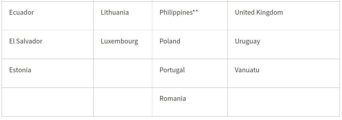 - República Dominicana (actualmente solo es elegible para el programa H-2A)