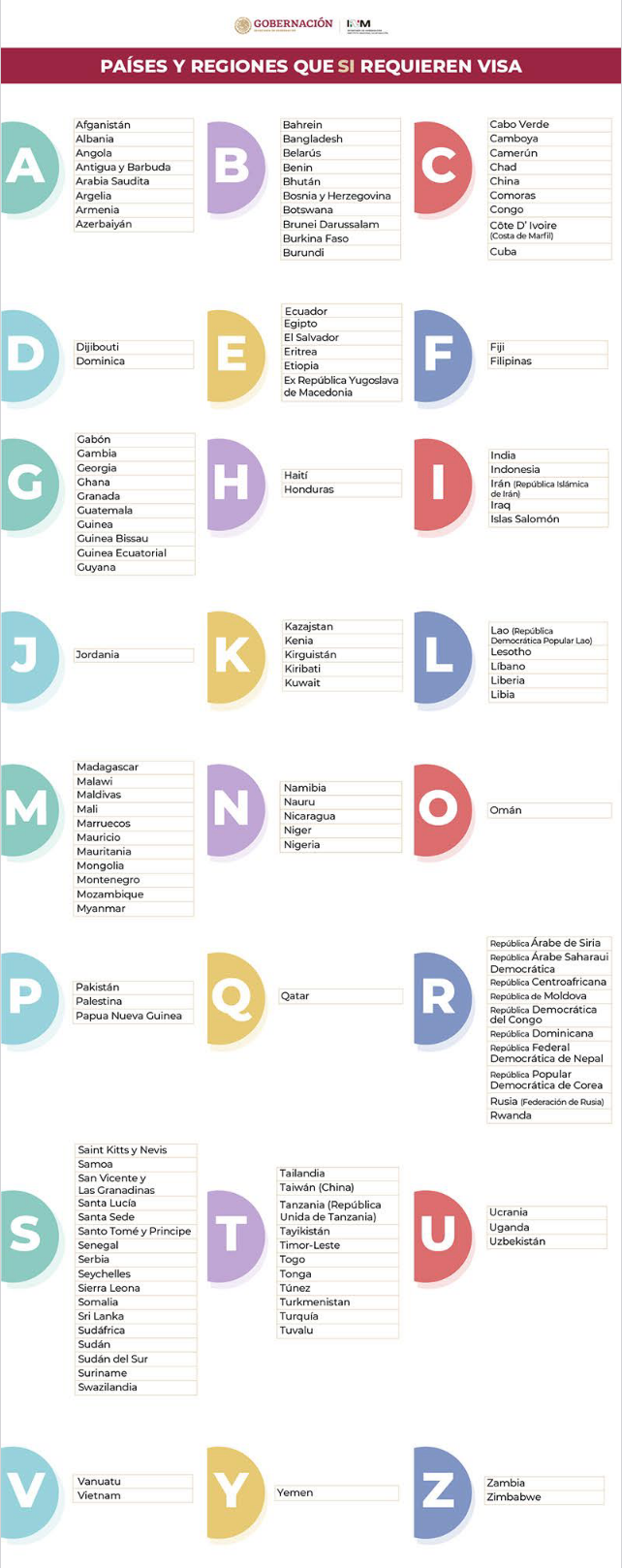 En tanto, de acuerdo con el Instituto Nacional de Migración (INM) las personas de los siguientes países sí requieren visa para visitar México.