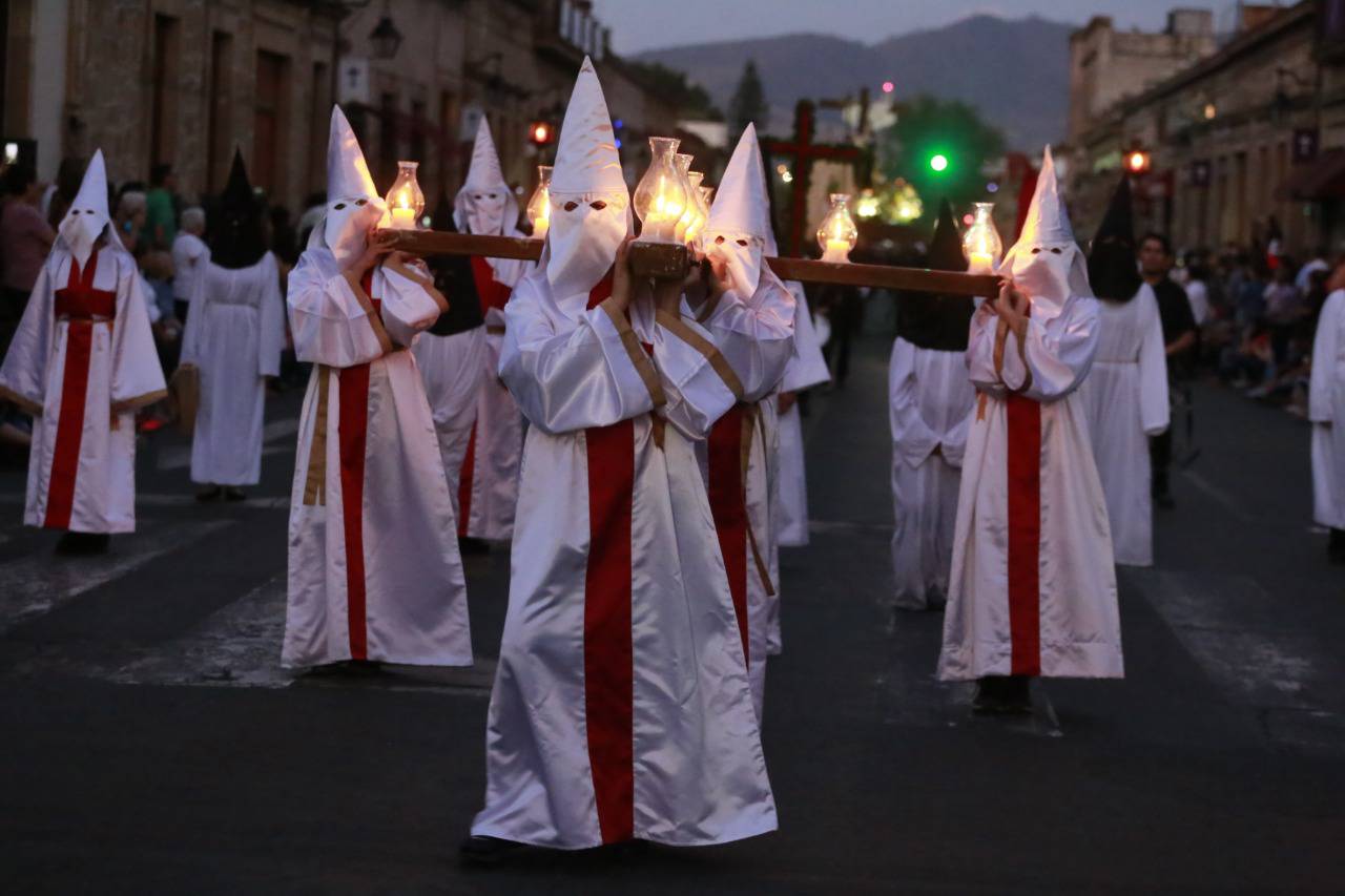 En Morelia, después del Viacrucis, se lleva a cabo la procesión del silencio, que es uno de los espectáculos religiosos más representativos de la ciudad durante la Semana Mayor. En el recorrido participan pobladores vestidos de blanco, morado y negro.