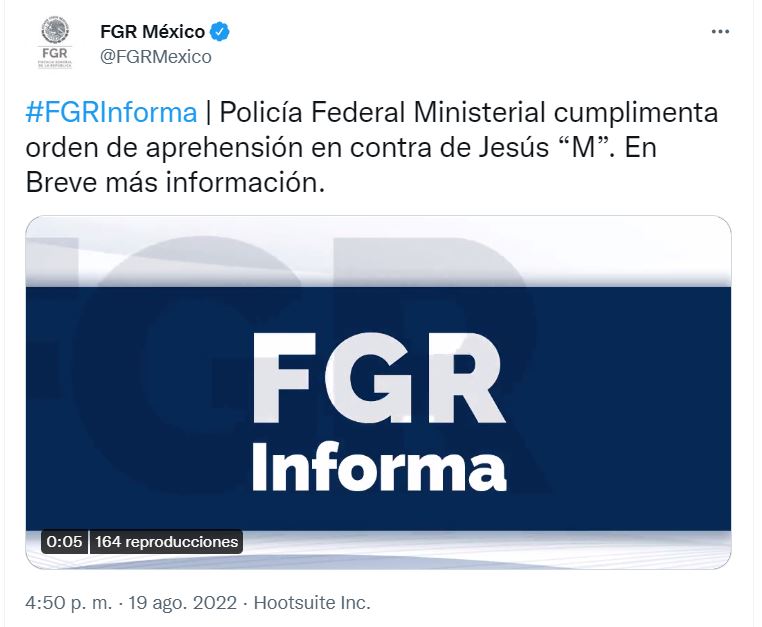 Este viernes 19 de agosto de 2022, la Fiscalía General de la República informó de la detención del exprocurador Jesús Murillo Karam