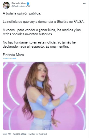 El mensaje indica: “La noticia de que voy a demandar a Shakira es FALSA. A veces, para vender o ganar likes, los medios y las redes sociales inventan historias. No hay fundamento en esta noticia. Yo jamás he declarado nada al respecto. Es una mentira”.