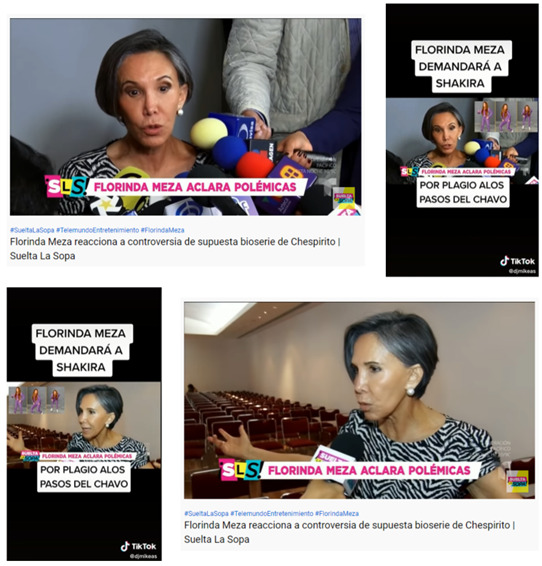En ellas, Meza habla de rumores sobre una bioserie sobre Chespirito —otro sitcom exitoso creado y protagonizado por Roberto Gómez Bolaños— y no sobre su demanda a Shakira, como indica falsamente el TikTok que fue compartido con los hashtags #humor y #risas.
