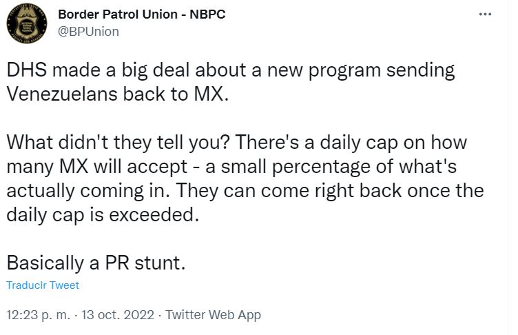 Sin embargo, el sindicato de la Patrulla Fronteriza dijo que este acuerdo tiene un límite diario en cuanto a la cantidad de migrantes que México que aceptará.